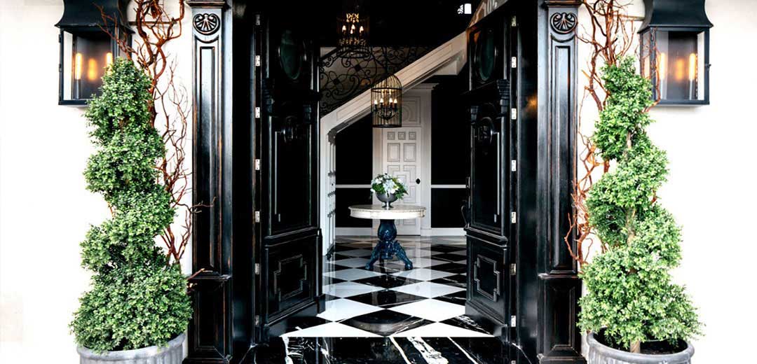 One of our favorite spaces was the library, with large custom-made wooden bookcases with a small and comfortable room, a bathroom in dark colors, gold details and a tapestry in the same tones.