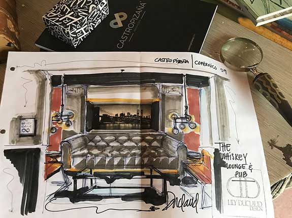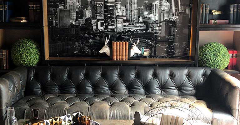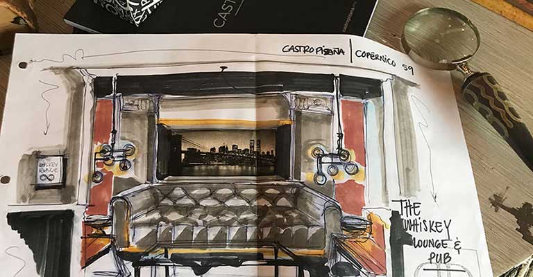 On this occasion we used an ocher color palette to make the place warmer, combined with blacks to give depth, the furniture design was made to measure.