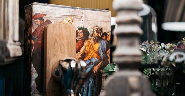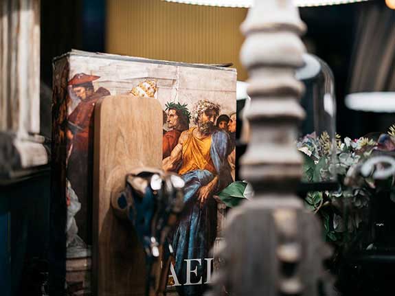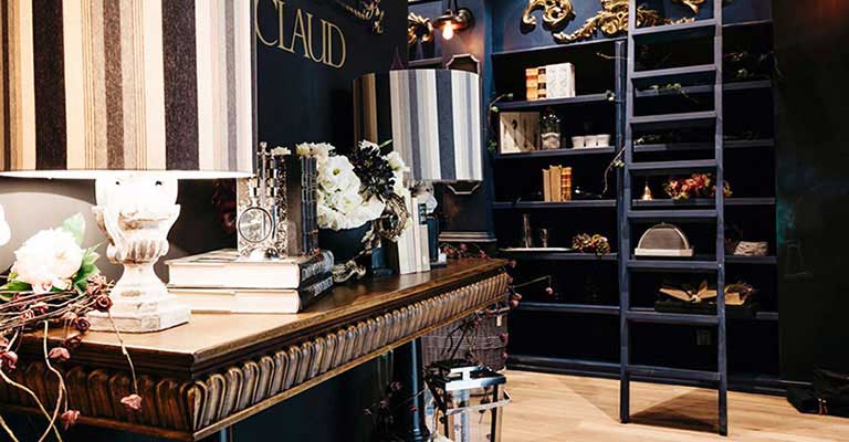 Inside we designed diferent types of furniture, all custom made. In the background an impressive black wooden bookcase that has a decorative items, as well as smaller bookcase on the other walls, gold moldings, wooden tables , all full of a number of lamps, frames, books, glassware, cushions … the world of decoration.