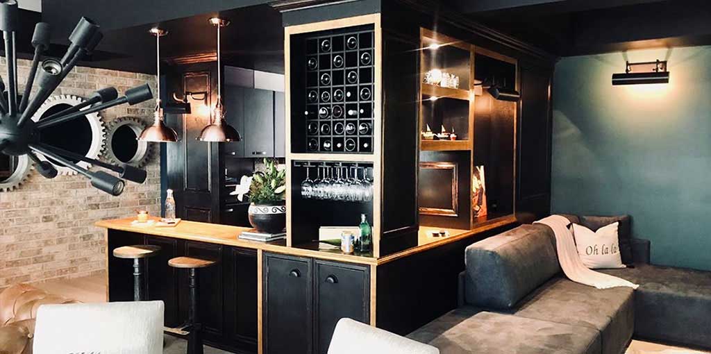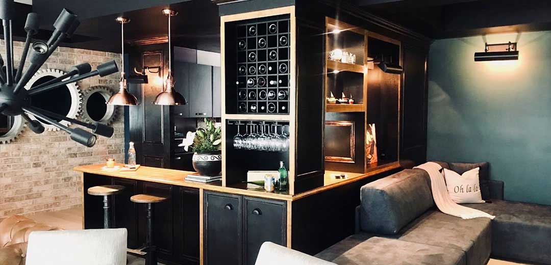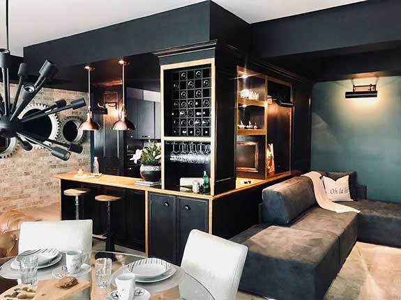 The kitchen was opened to integrate it into the living room and TV room area, a beautiful wooden bar with two hanging lamps was made, as well as a small black wooden bar that gives a double use to the bar.
